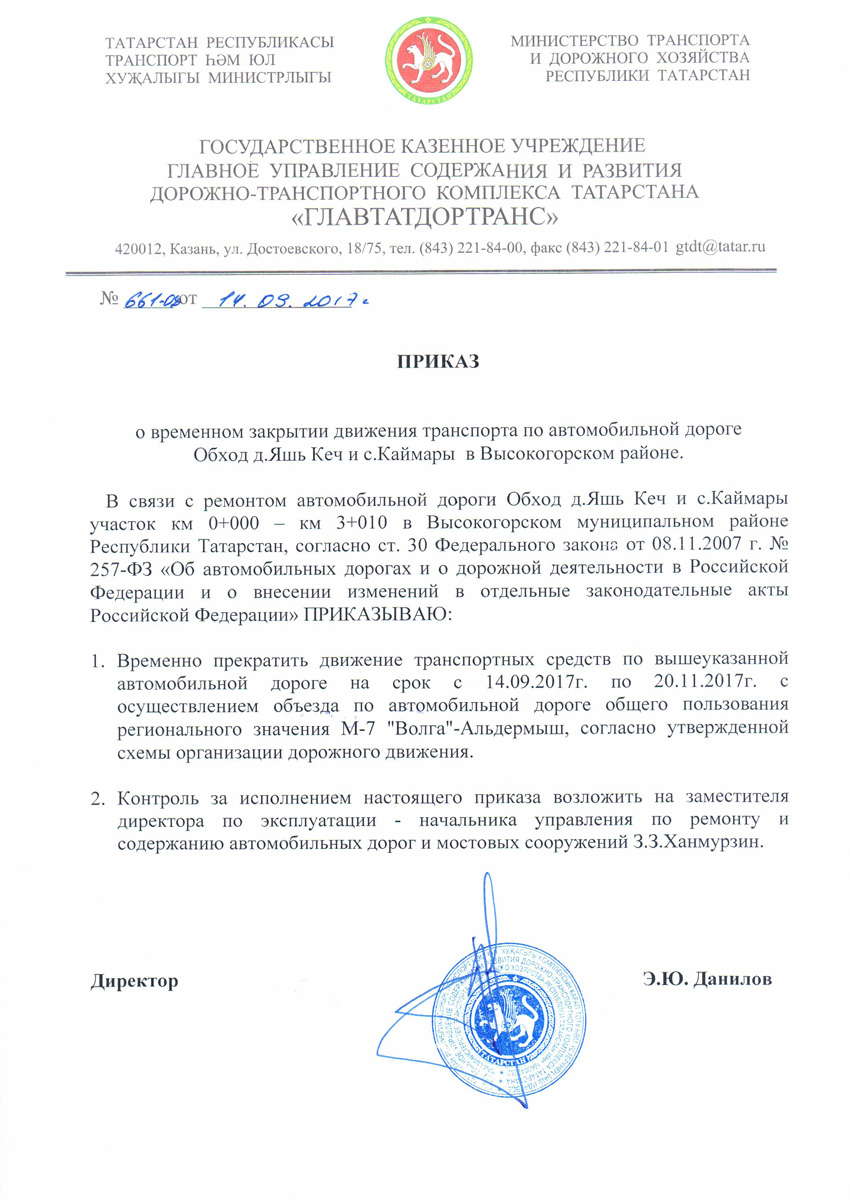 О временном закрытии движения транспорта по автомобильной дороге «Обход д.Яшь Кеч и с.Каймары».
