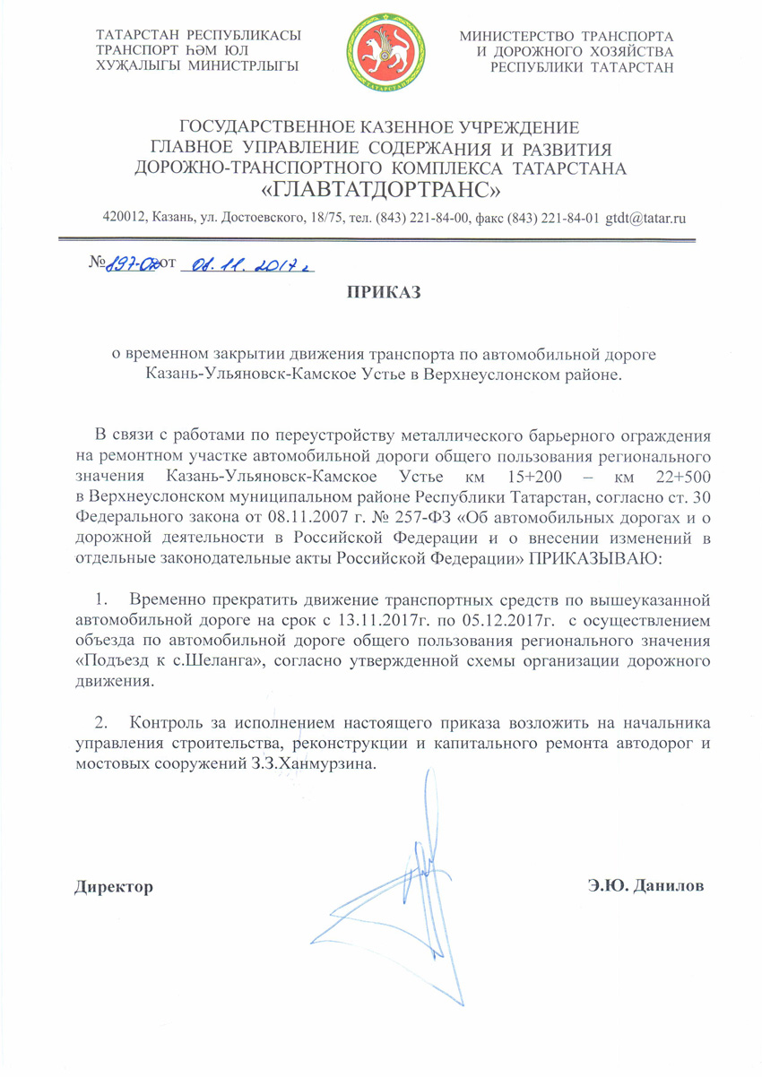 О временном закрытии движения транспорта по автомобильной дороге Казань-Ульяновск-Камское Устье.