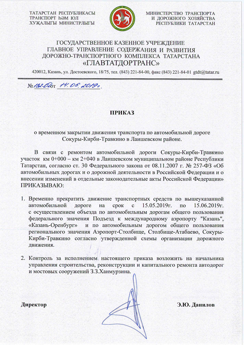 О временном закрытии движения транспорта по автомобильной дороге Сокуры-Кирби-Травкино.