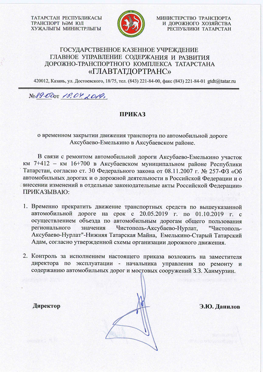 О временном закрытии движения транспорта по автомобильной дороге Аксубаево-Емелькино.