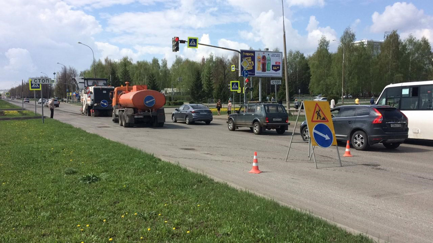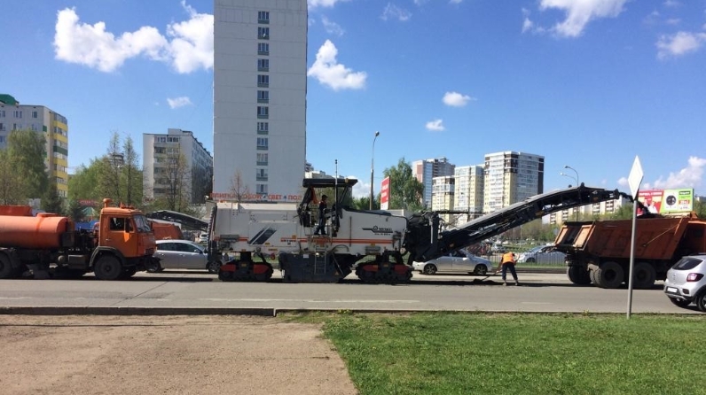 Полным ходом идут дорожные работы на одном из главных проспектов Автограда ‒ ул. Мира, где на сегодняшний день выполнено фрезерование старого слоя асфальтобетона и ведется подготовка к устройству верхнего слоя покрытия. Генподрядная организация ЗАО «Трест Камдорстрой».