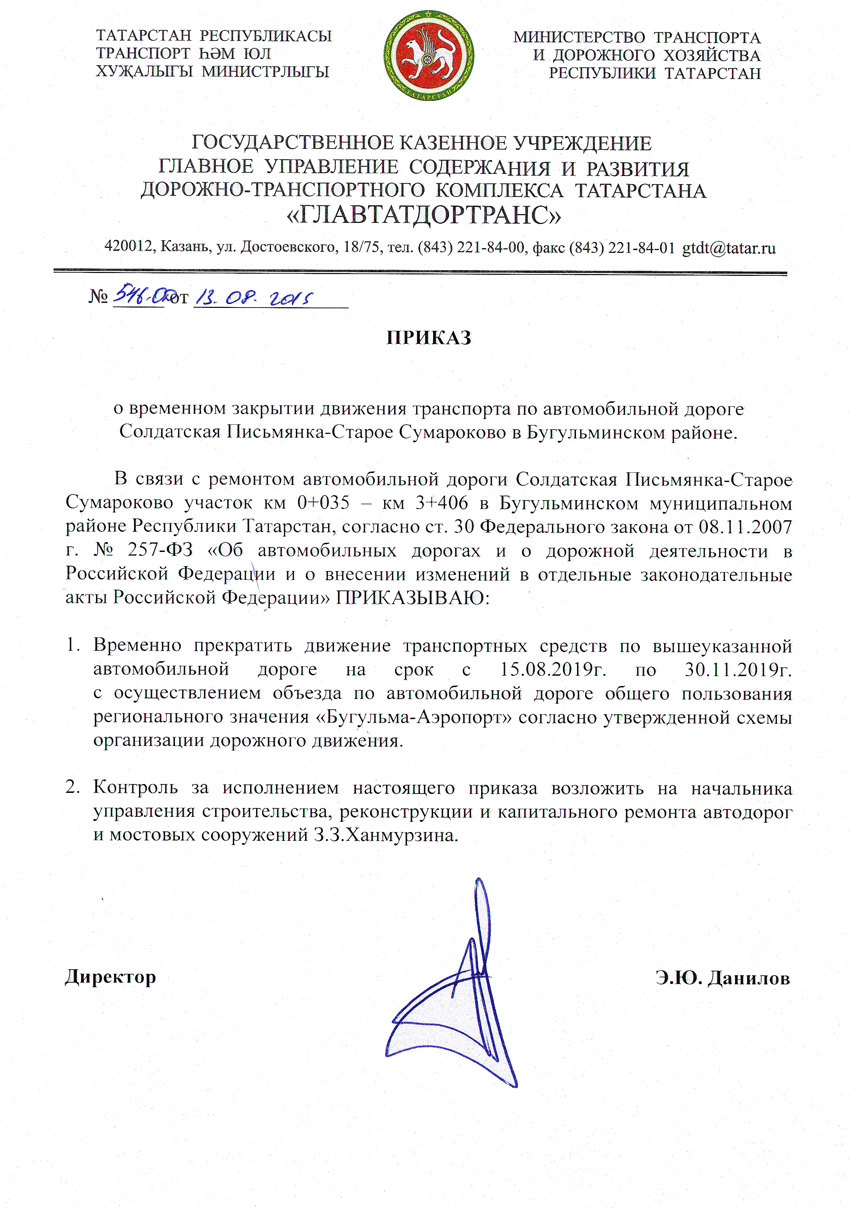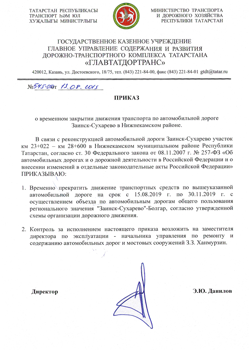 О временном закрытии движения транспорта по участкам автомобильных дорог Заинск-Сухарево и Солдатская Письмянка-Старое Сумароково.