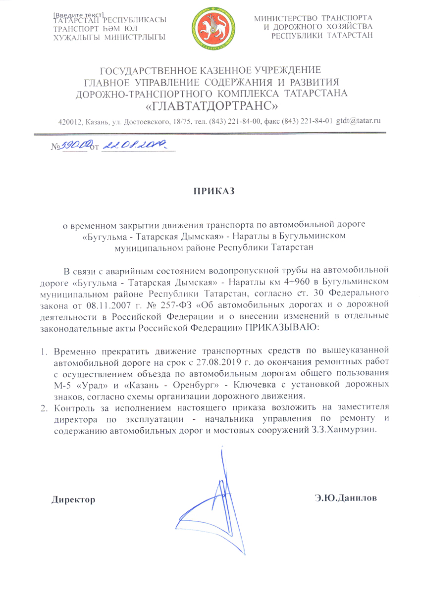 О временном закрытии движения транспорта по автомобильной дороге «Бугульма - Татарская Дымская» - Наратлы.