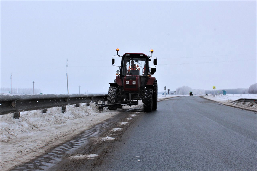 По оперативной информации в настоящее время на региональных дорогах работают 287 единиц различной дорожной снегоуборочной техники.