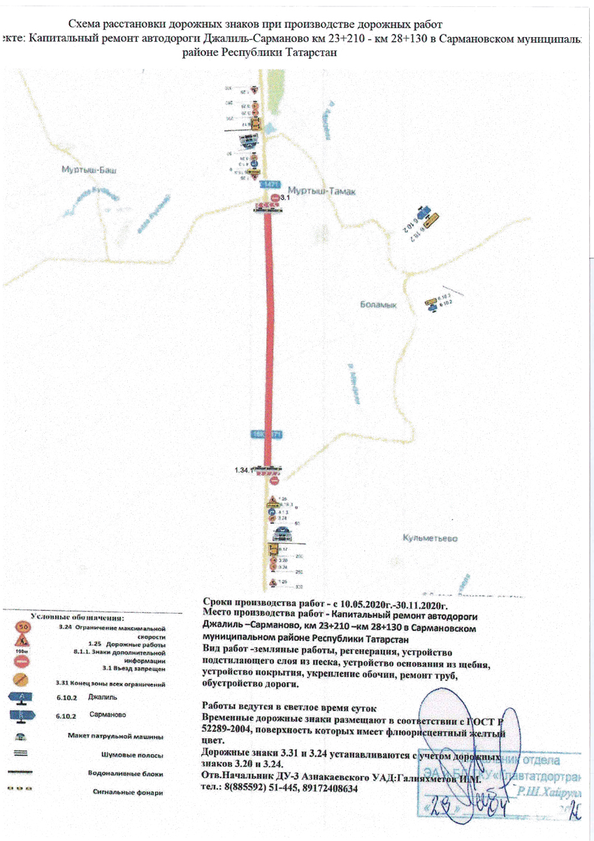 О временном закрытии движения транспорта по автомобильной дороге Джалиль-Сарманово.