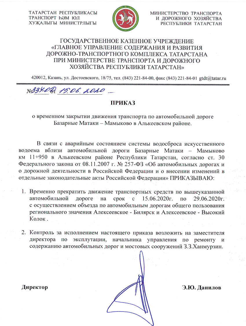 О временном закрытии движения транспорта по автомобильной дороге Базарные Матаки – Мамыково.