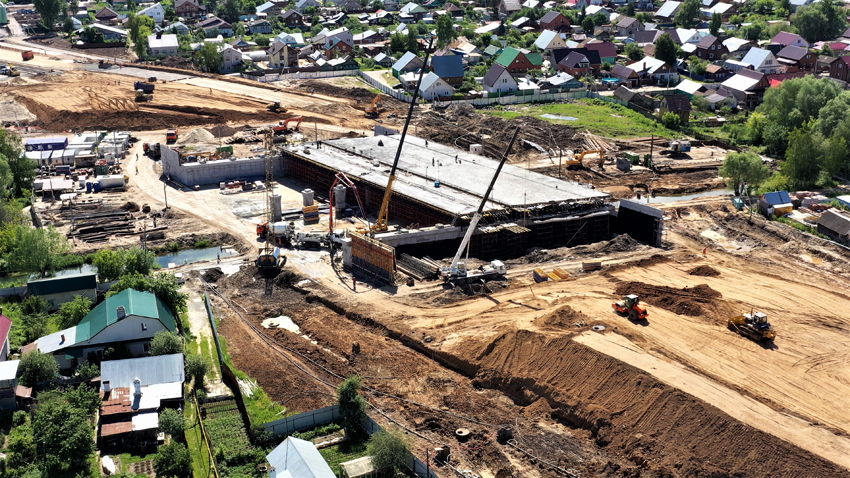 Работы в рамках второго этапа строительства Большого Казанского кольца, а именно, участка от ул. Борисковской до ул. Технической, ввод которого запланирован в конце августа текущего года выполняются круглосуточно и идут в рамках согласованных Управлением графиков.