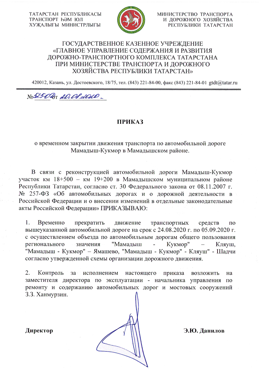 О временном закрытии движения транспорта по автомобильной дороге Мамадыш-Кукмор.