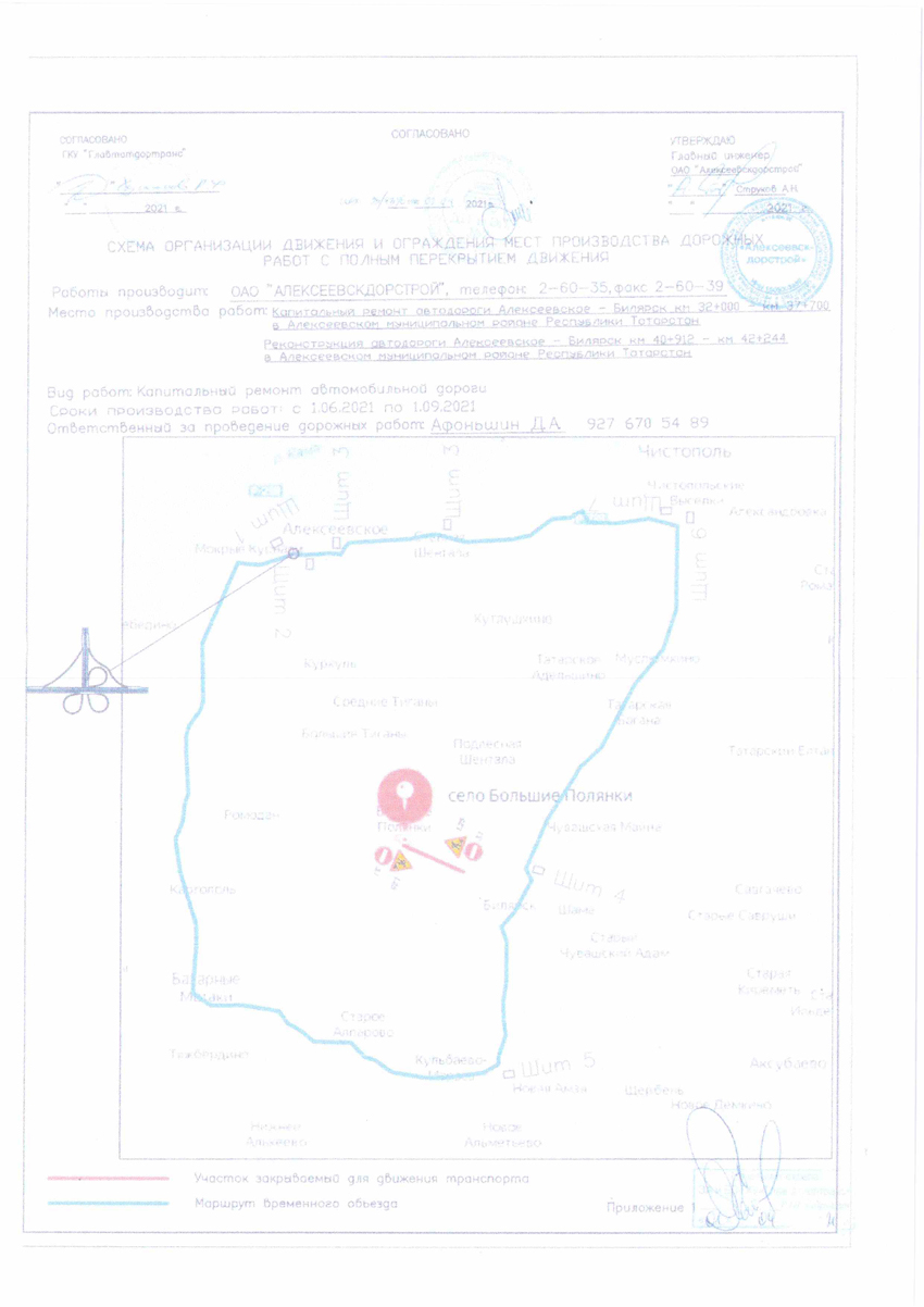 О временном закрытии движения транспорта по автомобильной дороге Алексеевское – Билярск.