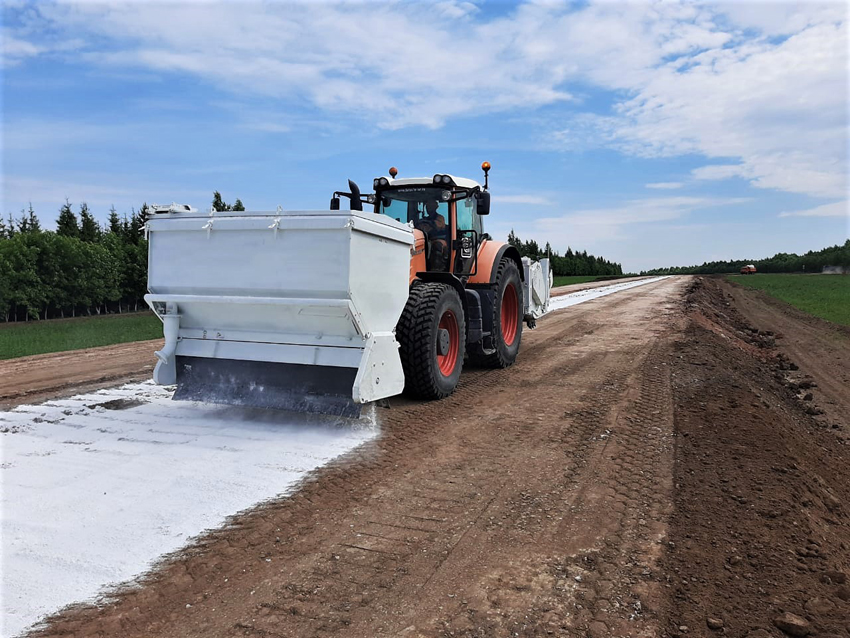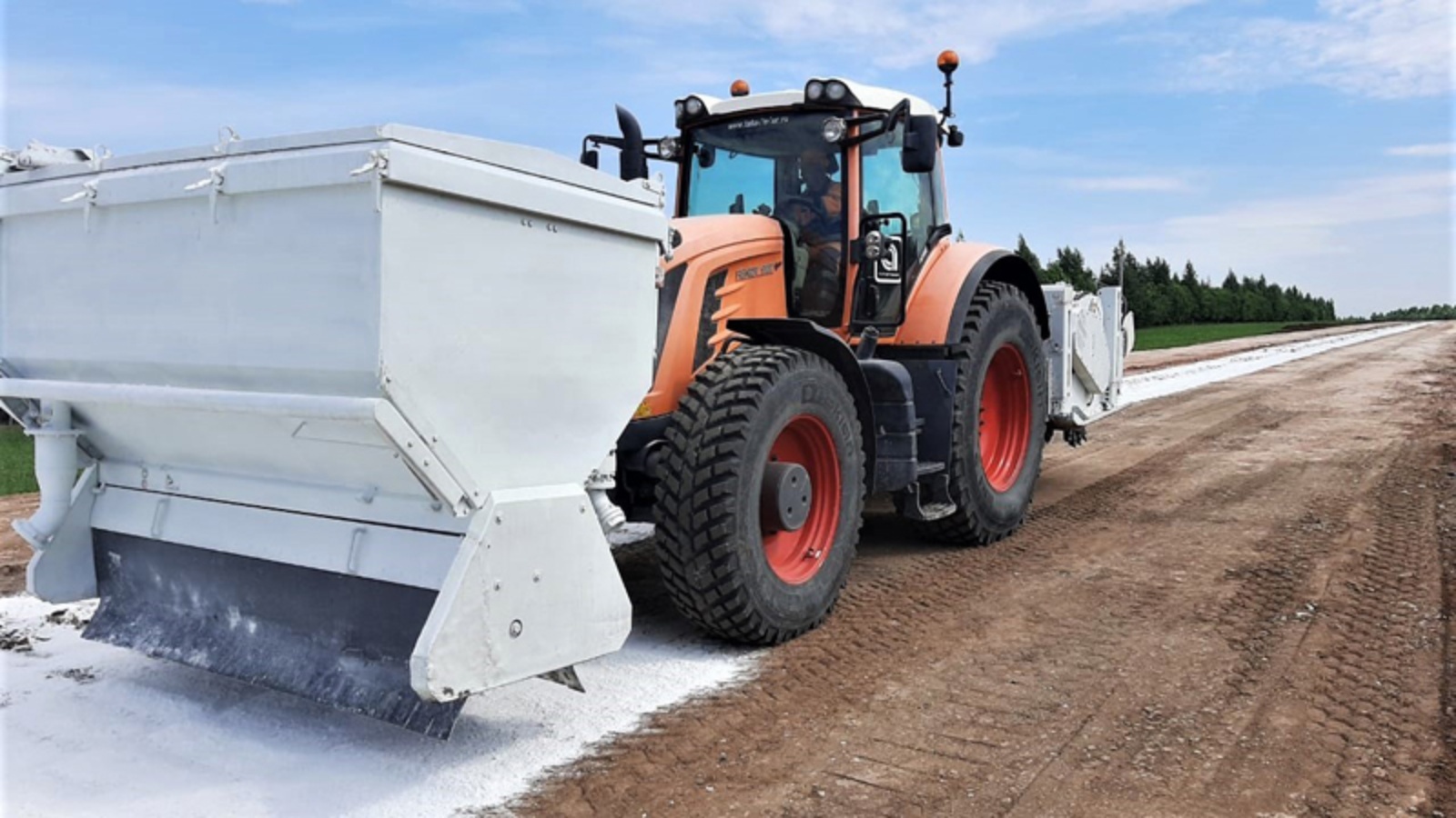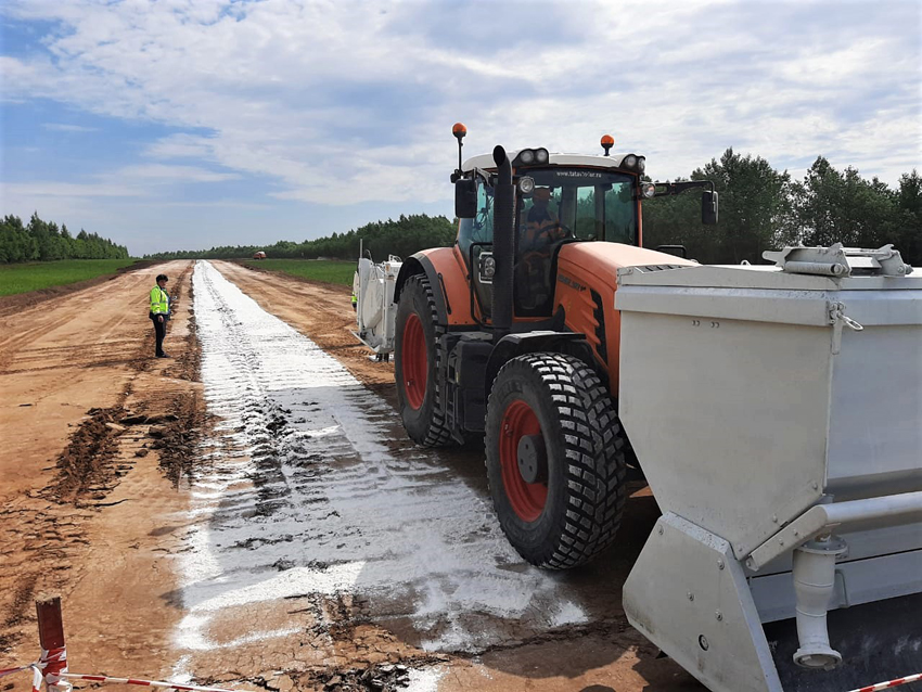 В настоящее время в ходе работ по капитальному ремонту участка км 15+203 по км 16+688 автомобильной дороги Тетюши ‒ Камское Устье в Тетюшском муниципальном районе Республики Татарстан дорожниками выполняются работы по стабилизации грунта известью (распределение материала). Капитальный ремонт ведется в рамках средств, предусмотренных программой дорожных работ на текущий 2021 год.