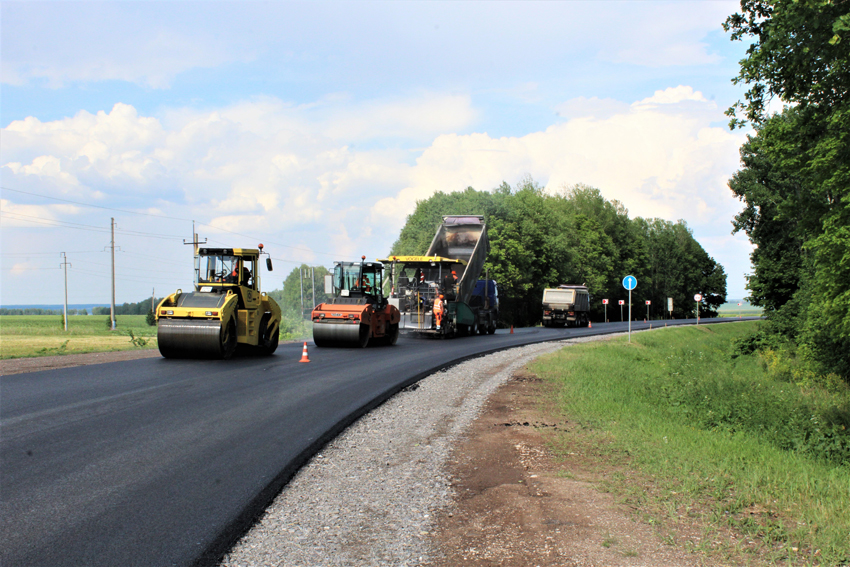 В Аксубаевском муниципальном районе Республики Татарстан на участке км 65+200 - км 67+200 автомобильной дороги Кузайкино ‒ Нурлат в настоящее время ведутся работы по устройству верхнего слоя асфальтобетонного покрытия из ЩМА-8.