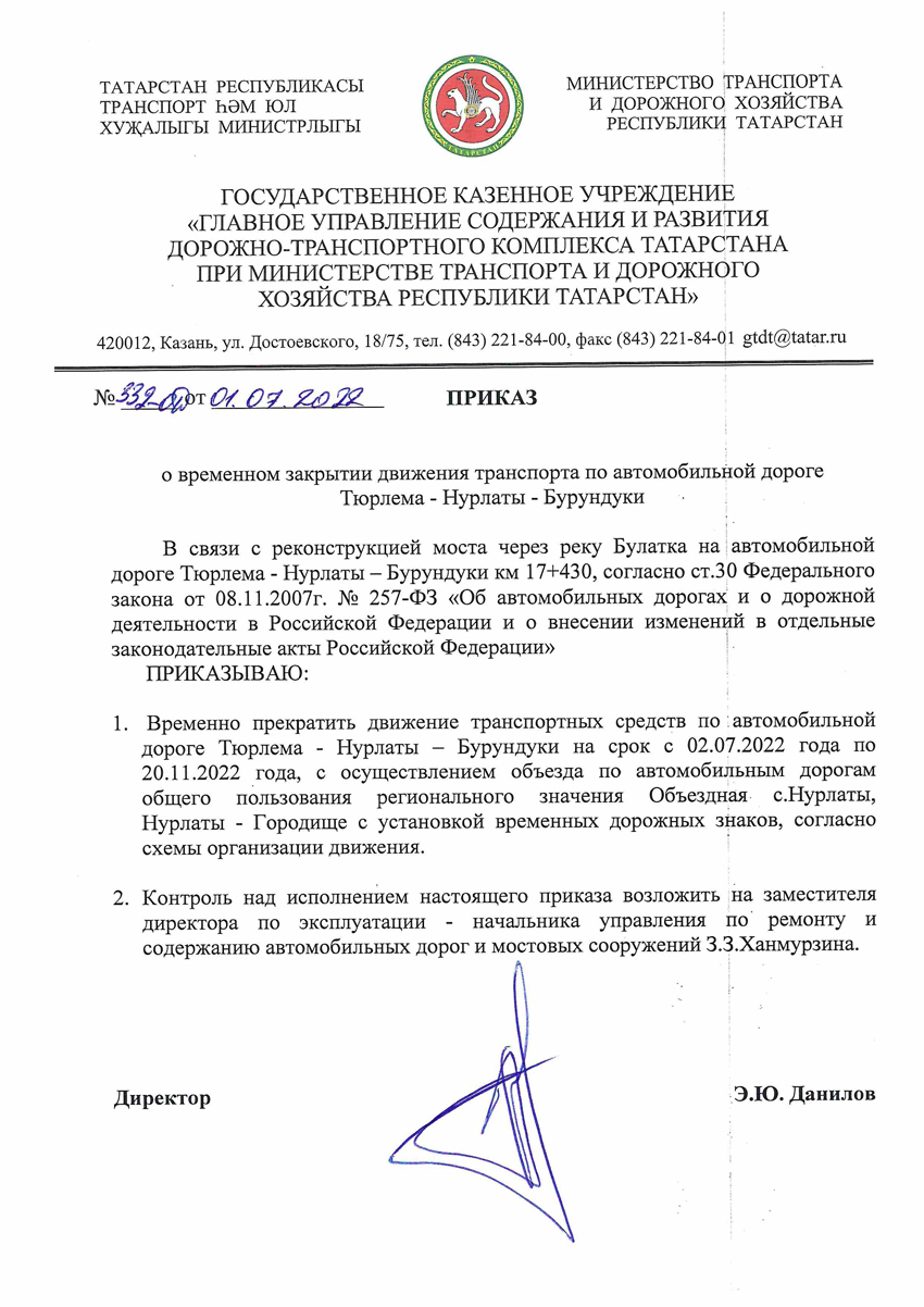 О временном закрытии движения транспорта по автомобильной дороге Тюрлема - Нурлаты - Бурундуки