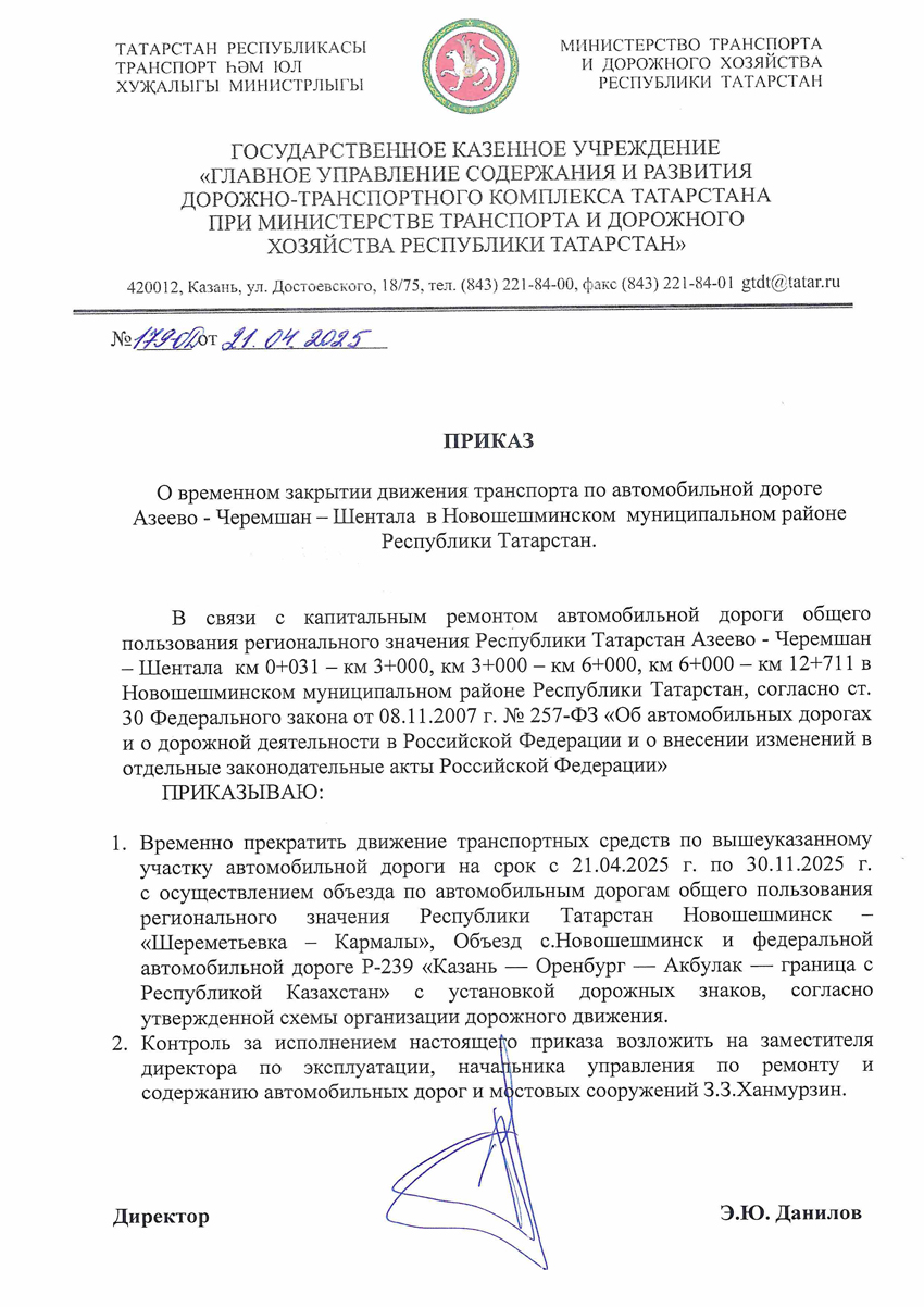 О временном закрытии движения транспорта по автомобильной дороге Азеево - Черемшан – Шентала