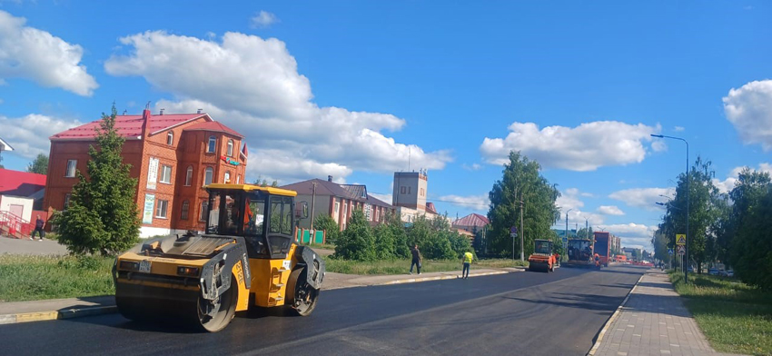 Полным ходом ведутся работы по устройству верхнего слоя асфальтобетонного покрытия на ул. Советская, выравнивающего слоя покрытия и устройству верхнего слоя асфальтобетонного покрытия на ул. Хамадеева, а также регенерации существующего покрытия с добавлением щебня на ул. Комсомольская. Ремонт на указанных улицах выполняется в ходе реализации программы "Ремонт дорожно-уличной сети муниципальных образований РТ» в рамках средств, предусмотренных Программой дорожных работ на текущий 2025 год.