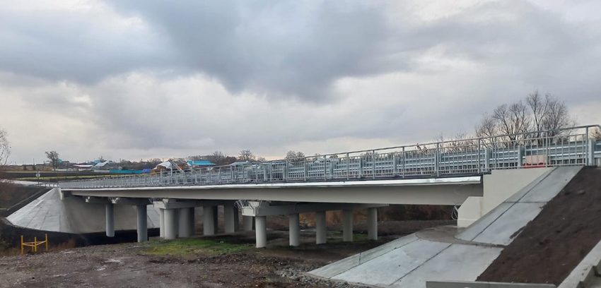 В рамках проекта был выполнен демонтаж конструкций существующего моста, работы по ремонту пролетных строений моста, замене опорных частей, устройству мостового полотна, деформационных швов на проезжей части моста, организованного водоотвода, а также работы по установке перильного и барьерного ограждений. Кроме этого, выполнено укрепление конусов и откосов насыпи монолитным железобетоном и устройство дорожной одежды со всеми конструктивными слоями на мосту и подходах.
