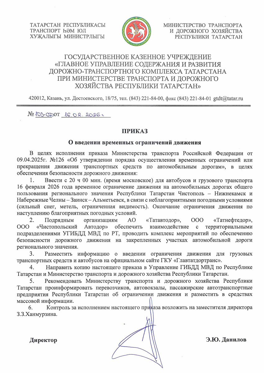 О временном ограничении движения на автомобильных дорогах Чистополь-Нижнекамск и Наб.Челны-Заинск-Альметьевск