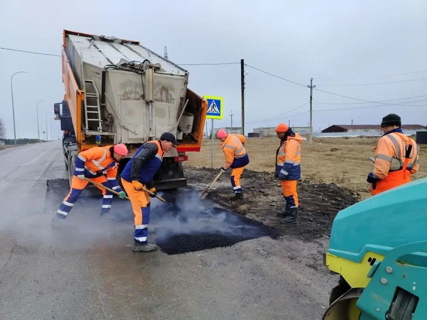 Что касается работ по устранению ямочности, то на 07.04.2026 г. работы по ямочному ремонту выполнены на площади свыше 46 300 кв. метров, израсходовано более 5 700 тонн холодного, горячего и литого асфальтобетона.