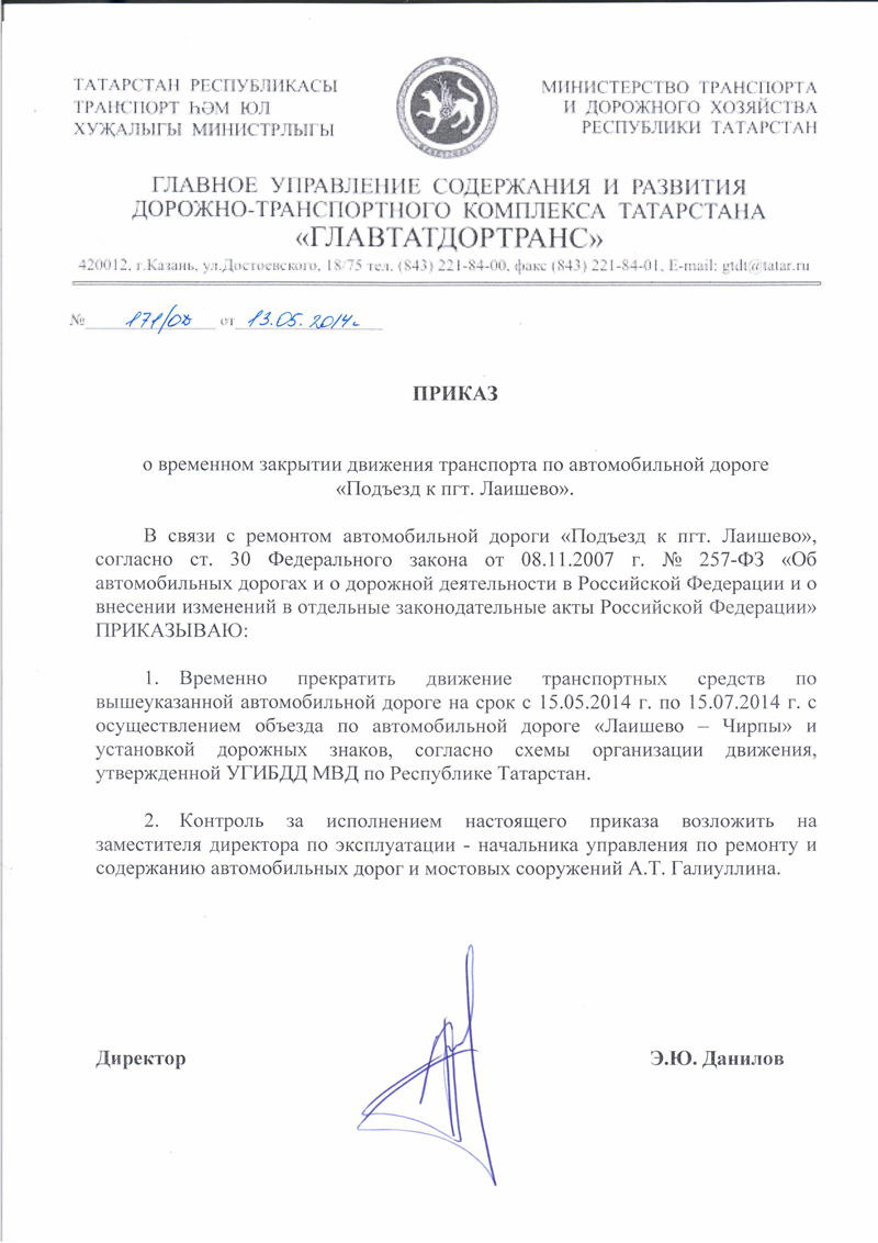 Временно закрывается движение транспорта на автомобильной дороге "Подъезд к пгт. Лаишево"
