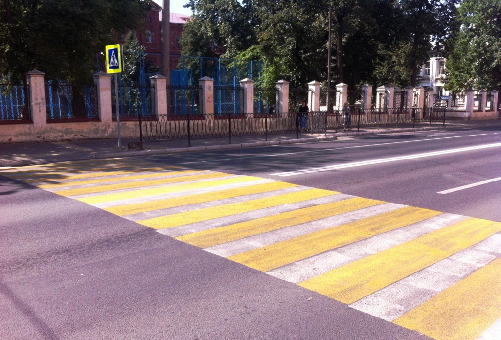 Кроме, того в столице появился новый формат пешеходных переходов. Было решено применить более заметную желтую разметку в сочетании с традиционной белой. Новый формат наземных пешеходных переходов можно встретить, например, на пр. Ямашева или на ул. Николая Ершова, ул. Волкова, Бутлерова, Профсоюзной и многих других.