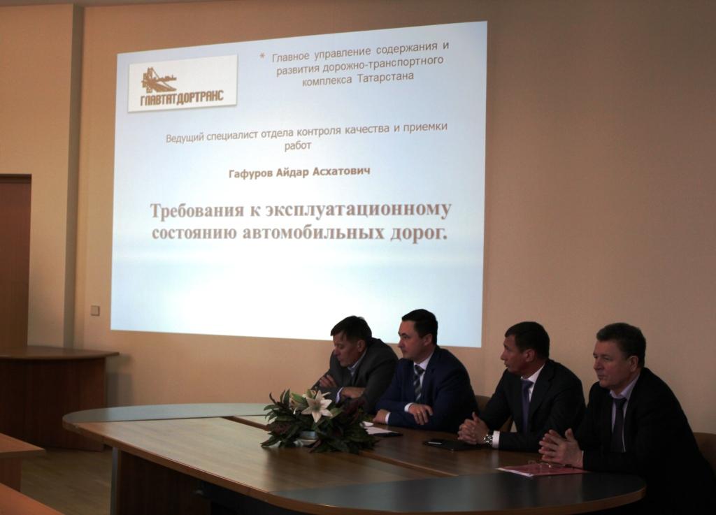 Вчера, 12 марта в ГКУ «Главтатдортранс» прошел семинар по теме: «Ремонт дорог с асфальтобетонным покрытием. Ямочный ремонт. Санация трещин», на который были приглашены заместители руководителей основных дорожных предприятий, непосредственно курирующих вопросы содержания автомобильных дорог в Республике Татарстан, а также главные инженеры и начальники участков дорожных организаций.