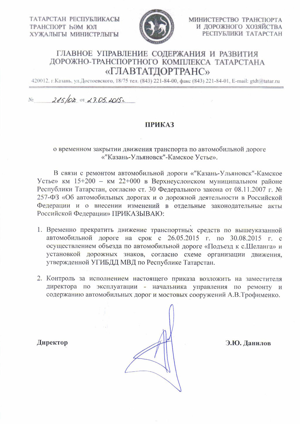 Временно прекращается движения транспорта по автомобильной дороге «"Казань-Ульяновск"-Камское Устье».