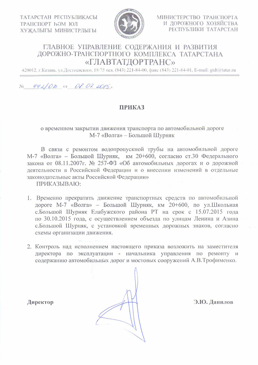 Закрывается движение по автомобильной дороге М-7 «Волга» – Большой Шурняк.