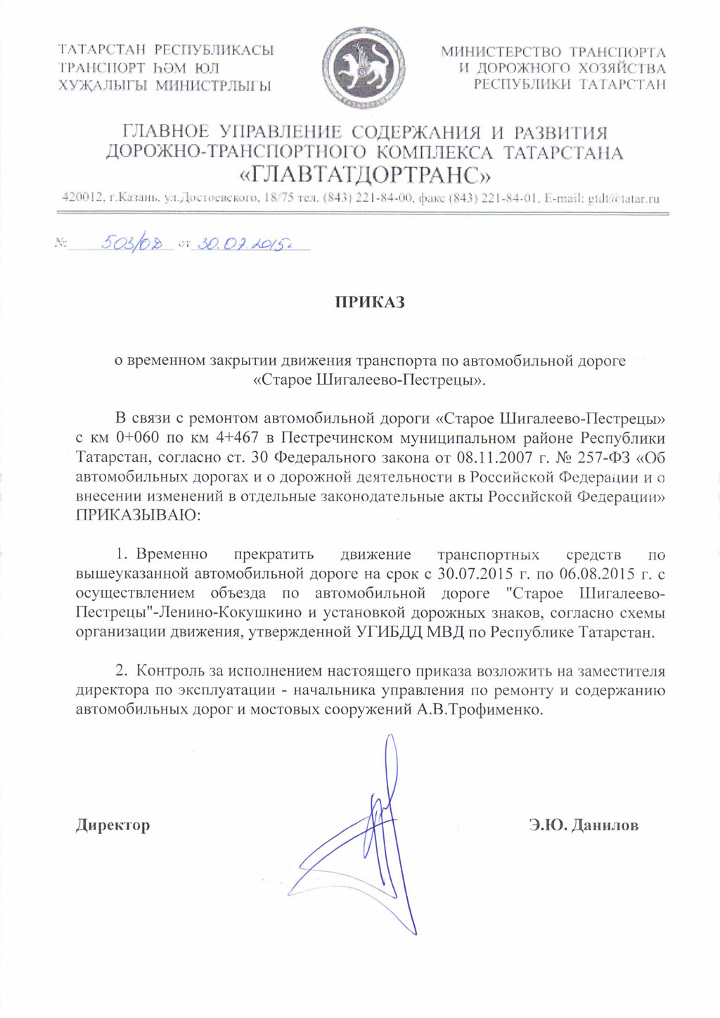 Временно закрывается движение транспорта по автомобильной дороге «Старое Шигалеево-Пестрецы».