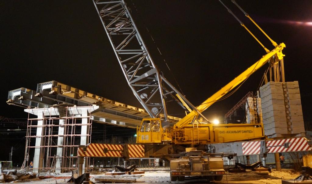 На сегодняшний день завершены работы по монтажу пролетного строения между опорами № 6 и № 7 над железнодорожными путями в рамках строительства путепровода через железную дорогу на 758 км ст. Зеленый Дол в г. Зеленодольске в Зеленодольском районе Республики Татарстан. Для завершения работ над ж/д путями московского направления было обеспечено три двухчасовых «глухих» окна в движении грузовых и пассажирских составов с полной их остановкой, а также организовано снятие напряжения в контактной сети станции на все время проведения указанных работ.