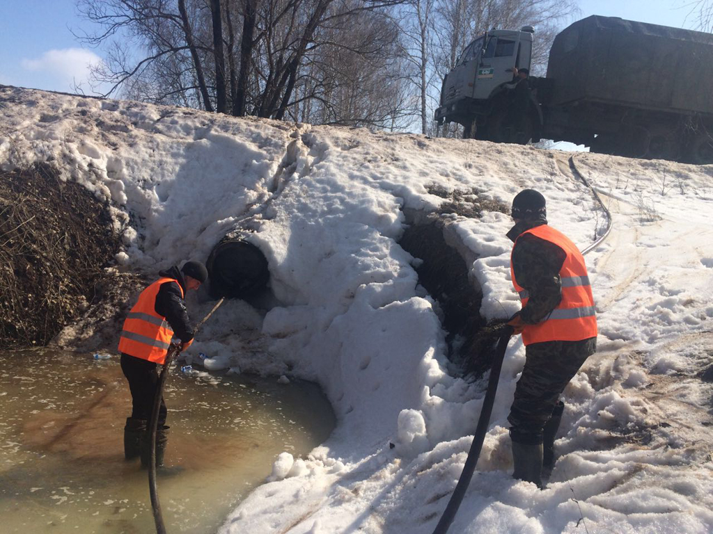 Кроме этого, продолжаются плановые работы по очистке водопропускных труб от грязи и мусора для беспрепятственного прохождения талой воды.