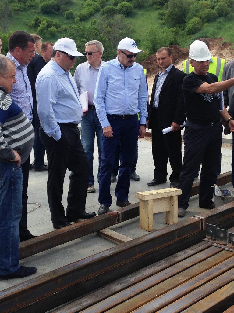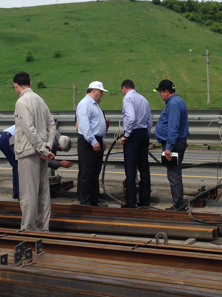 В ходе осмотра были обсуждены вопросы, касающиеся хода выполнения работ, графики производства работ и другие текущие вопросы. На сегодняшний день ведутся работы по устройству гидроизоляции на мосту, подготовительные работы для монтажа барьерного ограждения, а также устройство смотровых ходов и водоотводных сооружений.