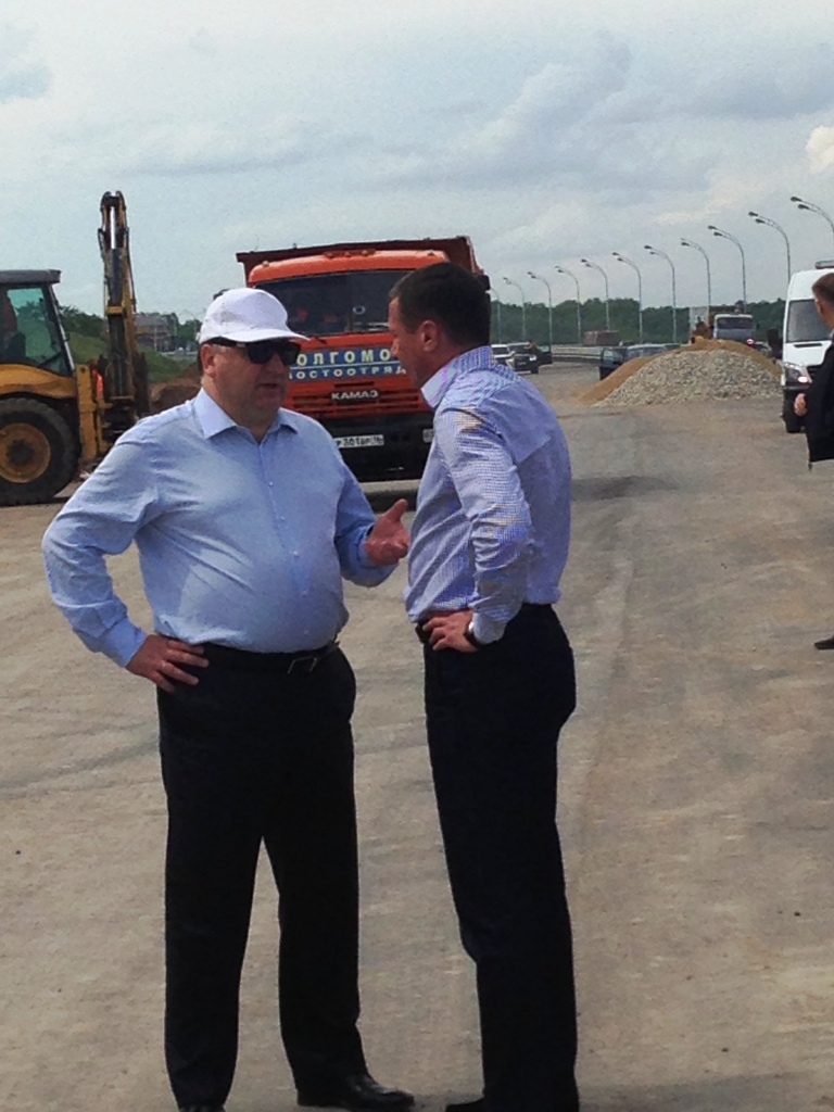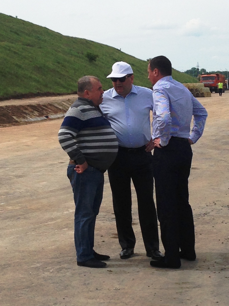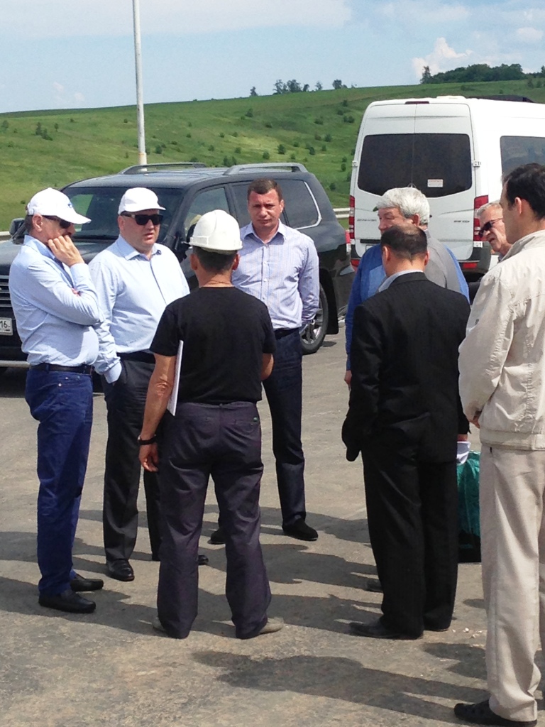 Вчера, 24 мая состоялось выездное совещание по строительству объекта «Мостовой переход ч/з р. Кама у с. Сорочьи Горы» (II пусковой комплекс) в Алексеевском районе РТ с участием министра транспорта и дорожного хозяйства РТ Ленара Сафина и директора ГКУ «Главтатдортранс» Эдуарда Данилова. На совещании присутствовали руководители таких крупных дорожно-строительных организаций как ОАО «Каздорстрой», ОАО «Алексеевскдорстрой», а также руководители субподрядных организаций, привлеченных к строительству.