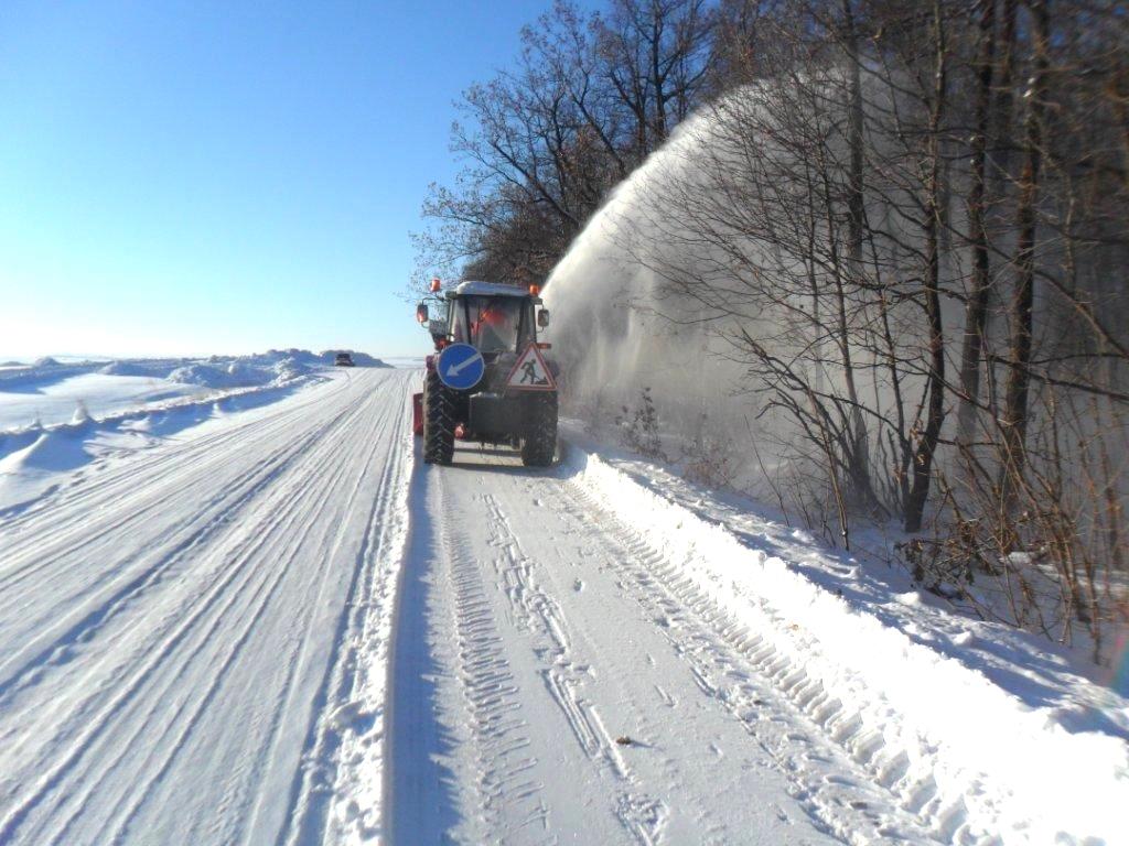 На сегодняшний момент по оперативной информации на региональных дорогах работают 250 единиц различной снегоуборочной техники.