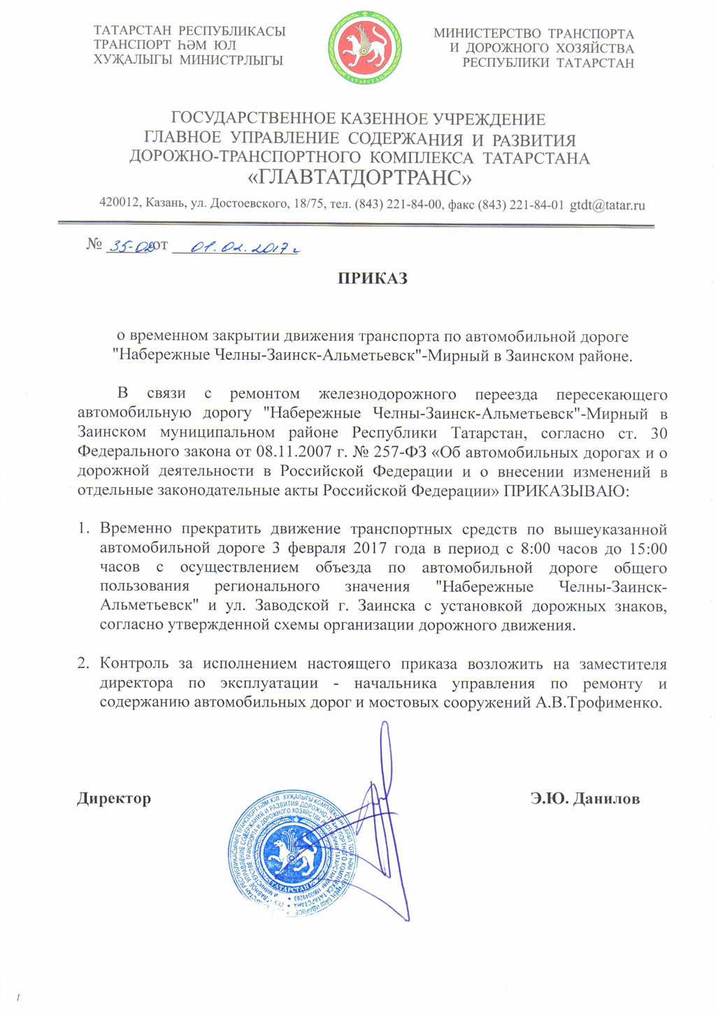 О временном закрытии движения транспорта по автомобильной дороге "Набережные Челны-Заинск-Альметьевск"-Мирный.