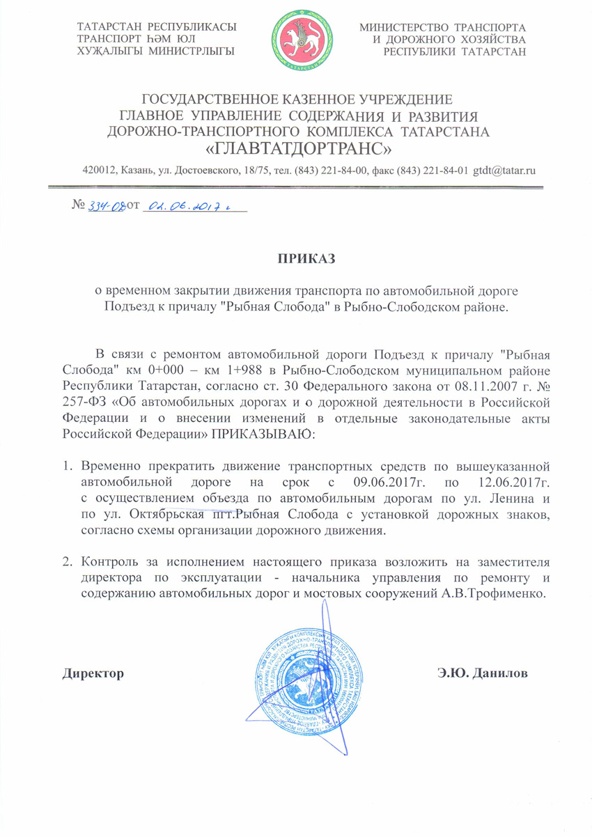 О временном закрытии движения транспорта по автомобильной дороге Подъезд к причалу "Рыбная Слобода"